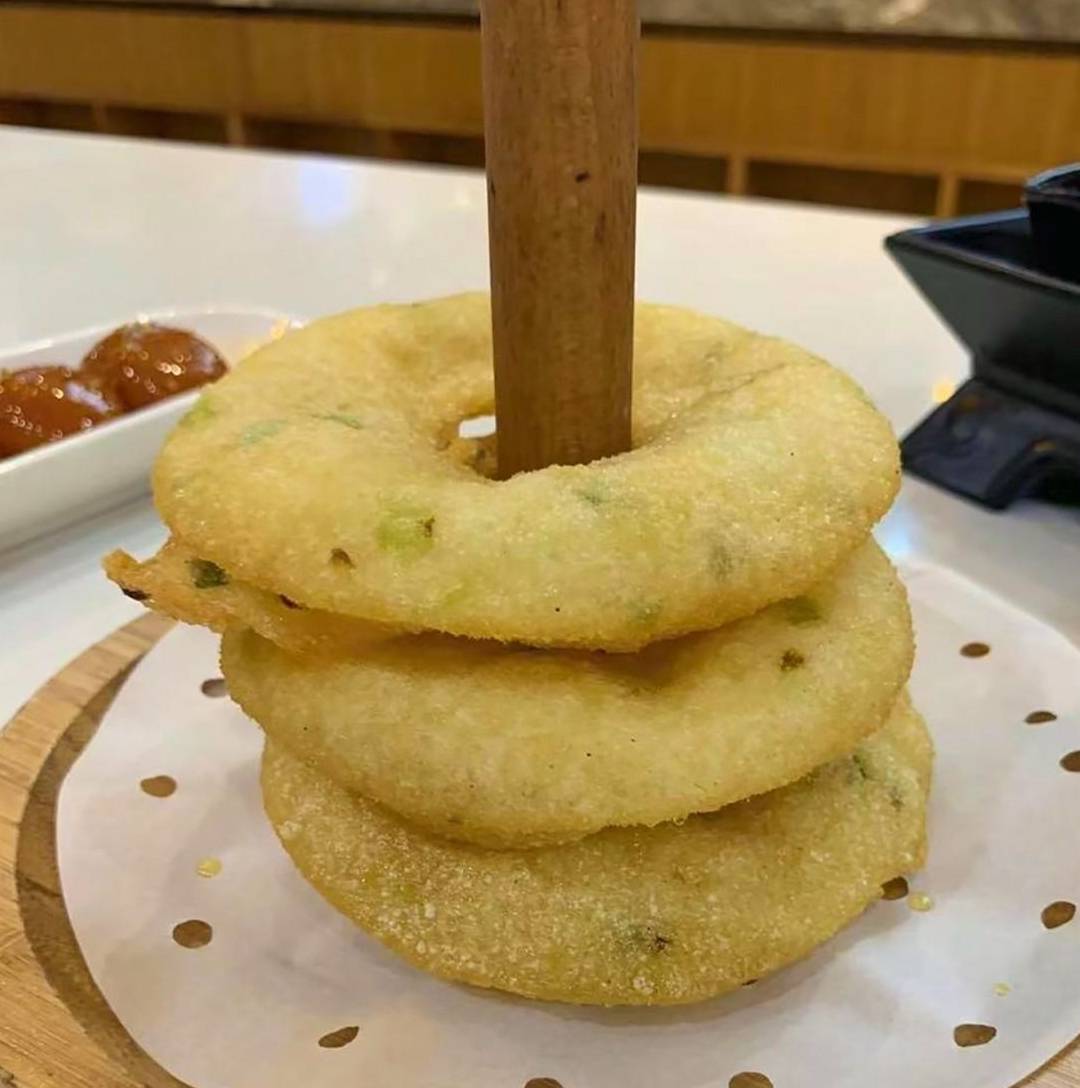 葱油粑粑的特色之处就是酥、脆、绵、软,色泽金黄,外脆而内柔。葱油粑粑我是第一次吃,样子看起来很可爱,咸葱香味,炸的外层特别的酥脆,里面的粑粑吃起来糯糯的,小朋友肯定很喜欢吃。
