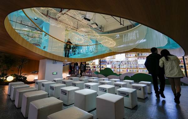 谦岛书院以书为媒,突破传统单一阅读功能,实现图书借阅、地方文献查阅、非遗展示、文创农品展售、讲座沙龙、艺术展览、文化活动、商务会客等多维功能的综合,是在传统图书馆和“新安书屋”之后3.0版的“阅读空间”。建设过程中,设计师在有限空间里巧妙地“植入”了千岛之船、谦岛千书、古城旧照、千岛文创、千岛灯会、千岛非遗、千岛之漪、千岛鱼群、骑龙引胜、云上谦岛等十个打卡点位,各有内涵、各有千秋,为书友、市民和游客挑战打卡技艺提供全新创意发挥空间。