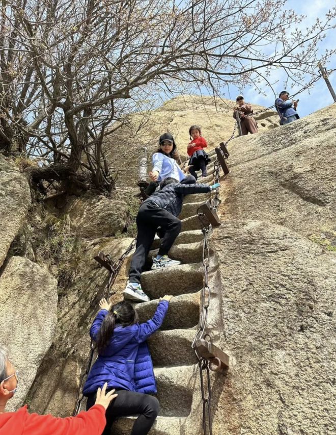 不少网友看后,纷纷表示:“华山很耗体力,带着三个小朋友爬华山,好厉害”,
