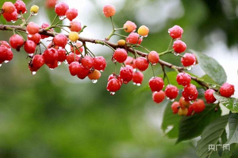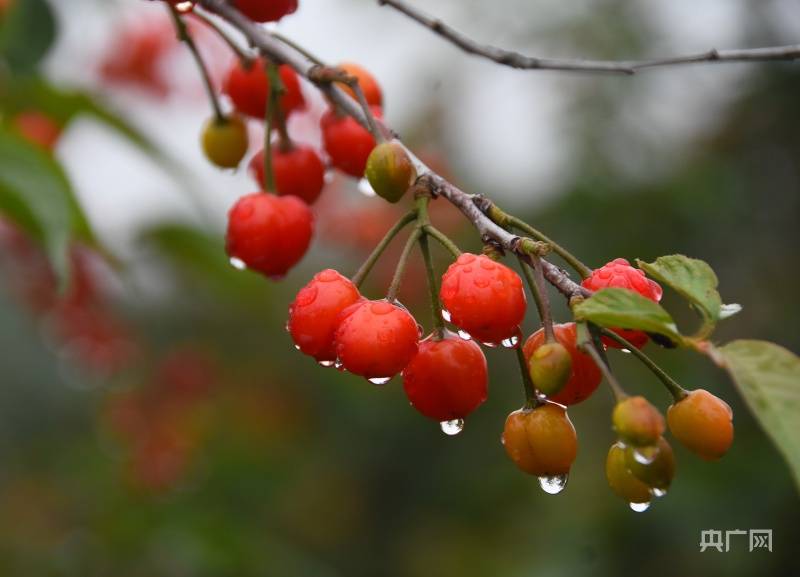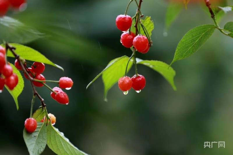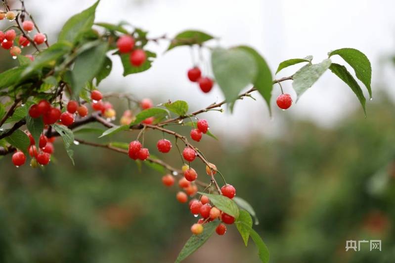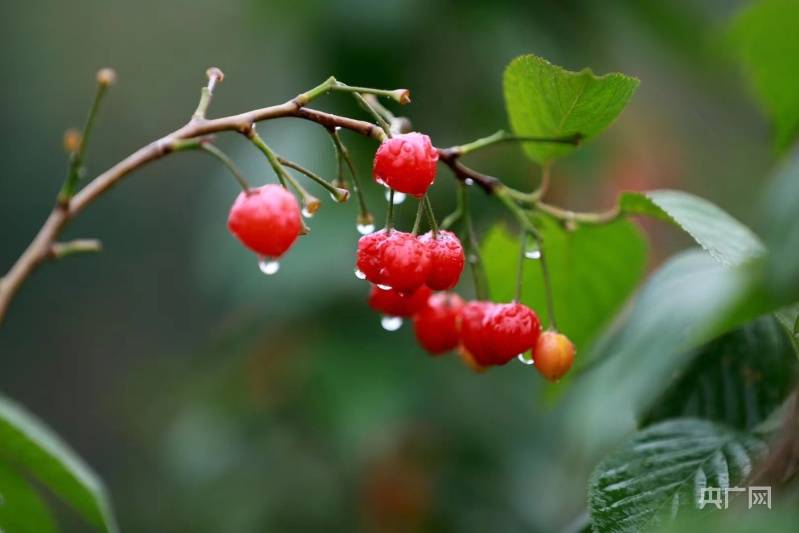 两岸春光正好,两千亩樱桃陆续成熟,万绿丛中,点点绯红(央广网发 杜欣 摄)
