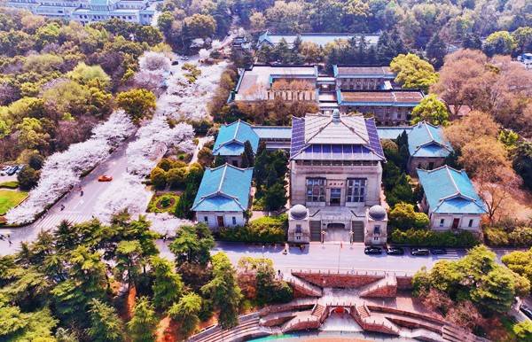 上图:武汉珞珈山畔历史古建筑与烂漫樱花交相辉映的武汉大学。