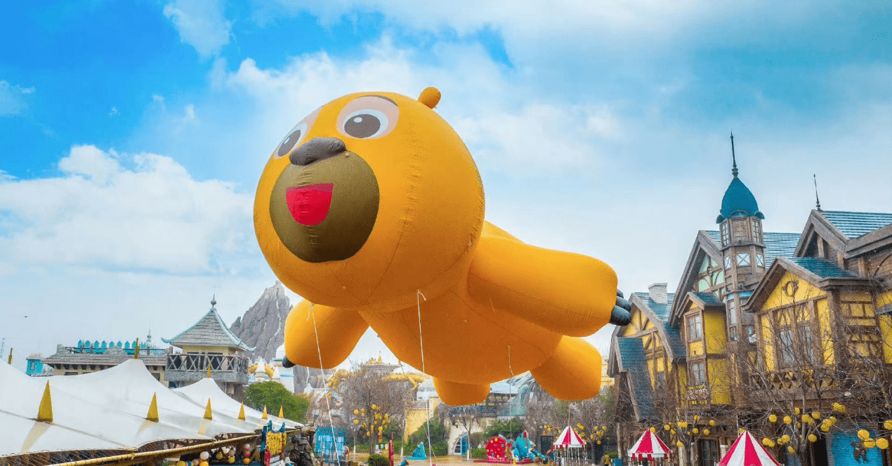 花车巡游焕新,萌熊飞天领航