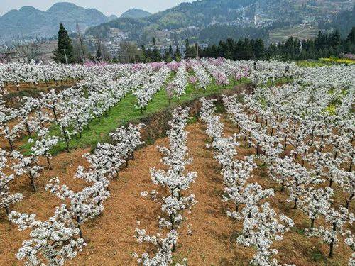 3月22日,织金县绮陌街道大黄梨平桥采摘园的千树梨花在如黛的群山下绽放枝头,一树树婀娜多姿的梨花素净淡雅、洁白如雪,温润馨香的芬芳令人陶醉,圣洁璀璨的美景吸引市民前往赏花游玩、拍照打卡。