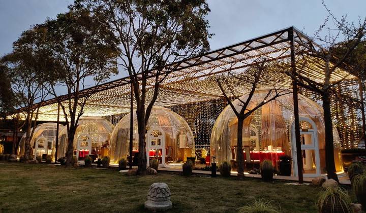 星空帐篷360度的全景透明设计可以给人最大的观景视野,仿佛住进了童话般的森林里,与大自然实现完美融合。目前,PC透明星空帐篷已成为不少餐饮及民宿业的标配,有不少朋友经常会问到星空帐篷有多大?该如何选择合适的星空帐篷?