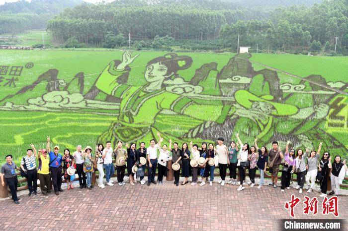 图为台湾同胞在广西稻田艺术景区合影留念。 蒋雪林 摄