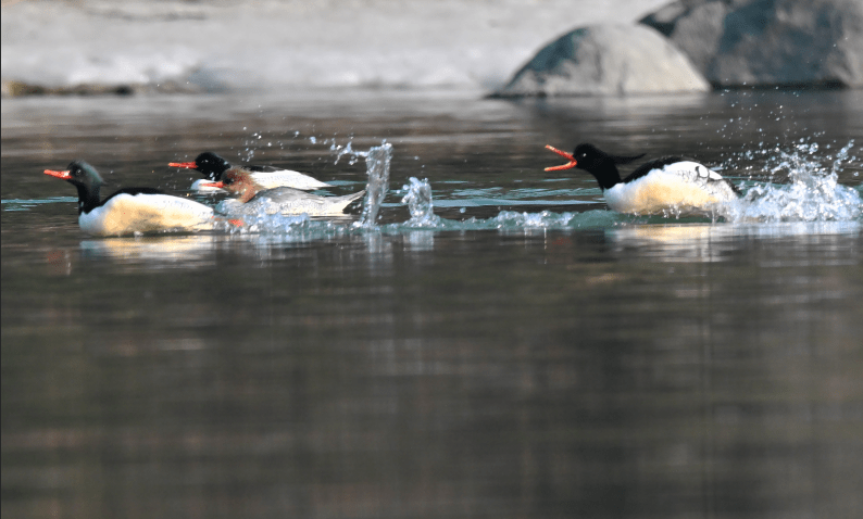 2013年,该湖首次发现中华秋沙鸭,之后虽也偶见身影,但大多形单影只、停留时间短暂,并躲在湖心深处,让人难以一睹芳容。