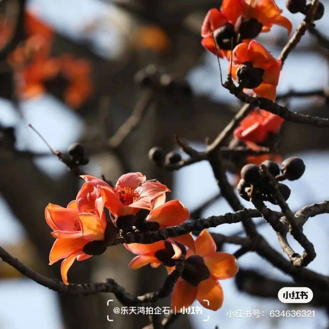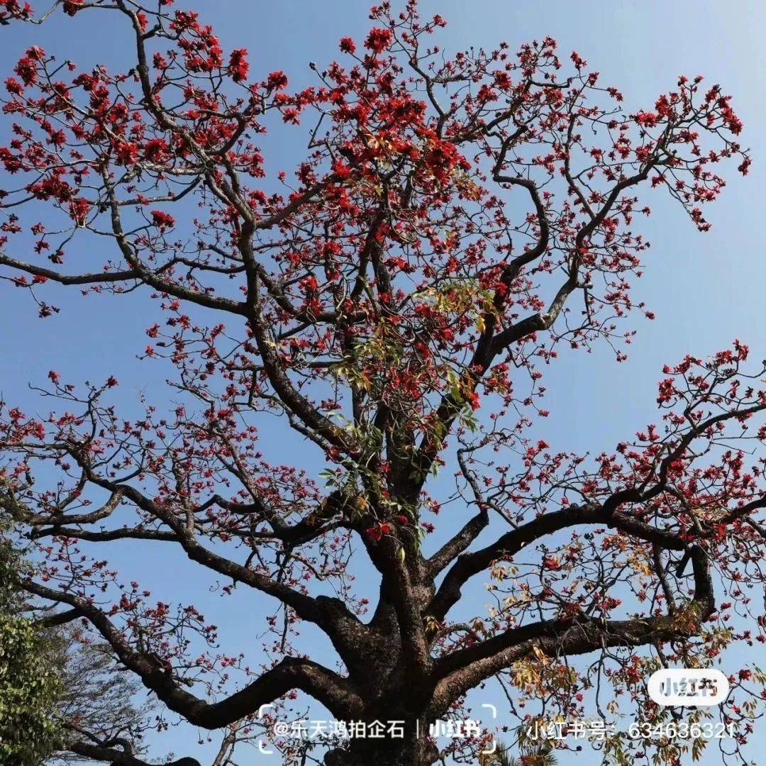 笔记内容:红棉报春,花满枝头。位于企石铁岗村的这棵木棉树,干粗而直,傲岸苍劲,属于国家三级古树,距今已有280多年历史。