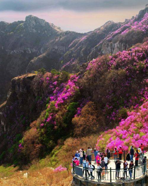 每年4月起,大连大黑山景区杜鹃花先后绽蕾吐蕊、展瓣生姿,从山顶一泻而下,纵目眺望,花海荡漾、银波耀眼、香气浮动、蔚为壮观。