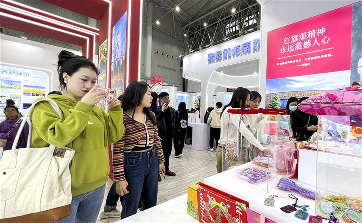 在主题研学线路展区,游客和展商代表在红旗渠精神、殷墟文化展区前驻足观看,感悟红色精神、探寻文化根脉。不少游客与工作人员深入交流,了解“华夏文明探源、读懂中原文博、认识新河南、领悟中国功夫、赓续红色记忆”等十条文化主题旅游线路的具体行程。