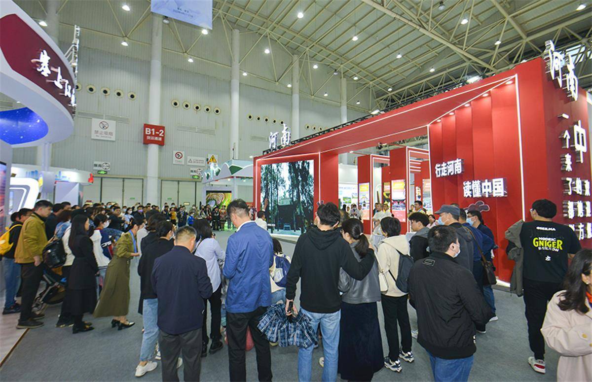 4月22日,第二届中国(武汉)文化旅游博览会在湖北武汉开幕,“老家河南”主题展馆精彩亮相。“老家河南”主题展馆围绕“行走河南·读懂中国”主题,将老家河南、天下黄河、华夏古都、中国功夫四大名片贯穿其中,设置了主题研学线路展区、文旅新业态展区、文化产业赋能乡村振兴展区、文创产品展区等多个专题展区。展馆以红色和白色作为主色调,通过开放大门的形象,凸显了中原特色、古老厚重、现代开放、时尚多彩的鲜明特征。