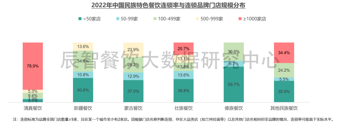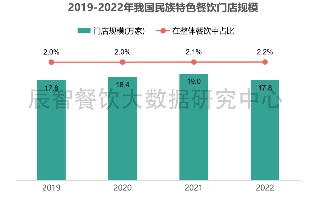 但从整体餐饮市场中的占比来看,民族特色餐饮占比约为2.2%,较上一年度有所提高,体现出了更强的抗周期性。