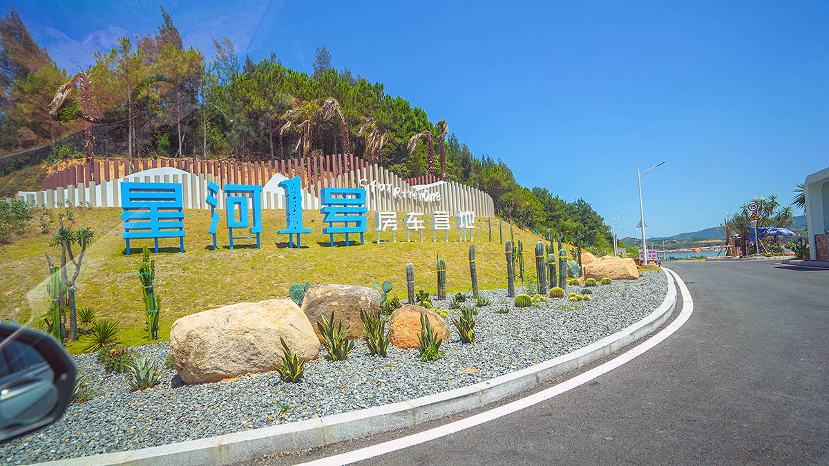 沿途还有专门的房车基地,房车基地就在海岸高崖之上,这里的“星河1号”房车营地 ,可以房车驻车,也有可以租借的房车旅馆,附近的两侧都是大片的海滩,选址的景色真是不错。