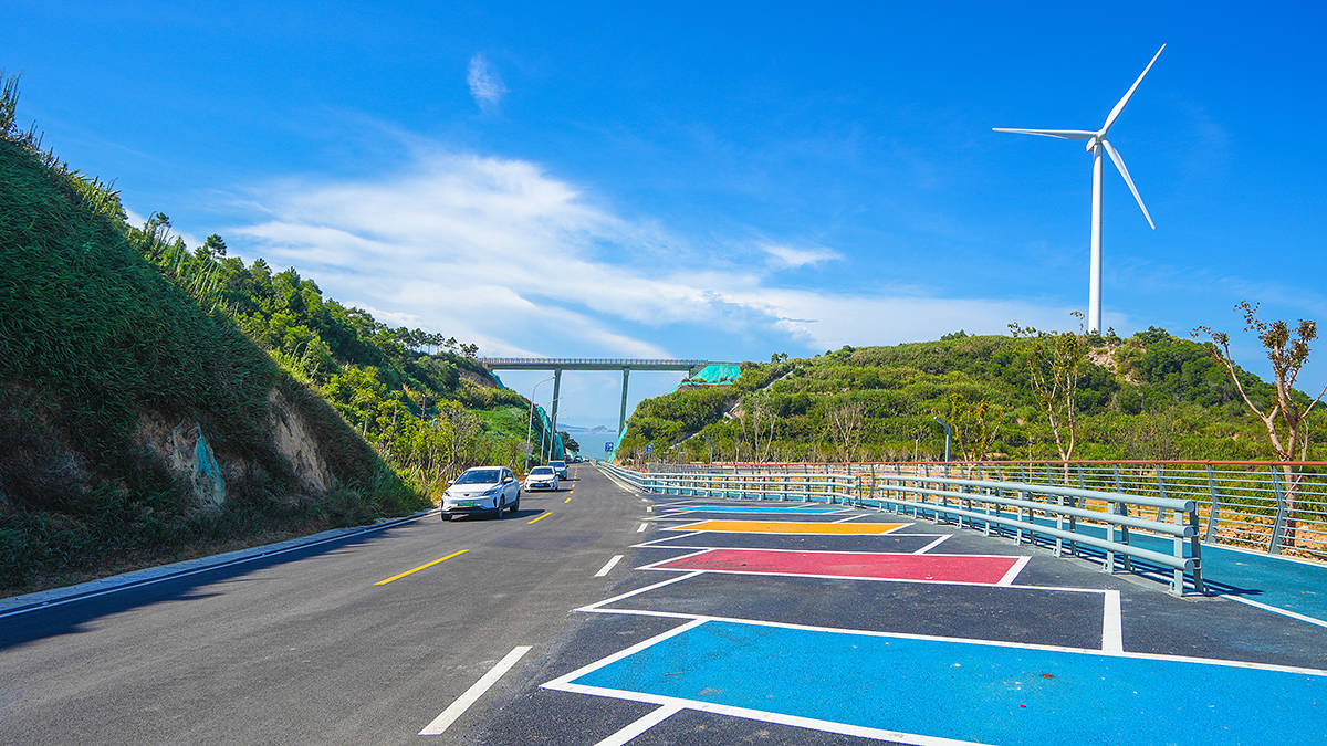 原来吕峡灯塔附近,鱼塘到灯塔山顶的道路,去年还是颠簸的土路,今年已经修建成了正规公路,轿车也能开到灯塔附近的山顶了。整条东海1号公路一直在延伸建设,路上的很多配套驿站和停车点,还会继续增加和完善。
