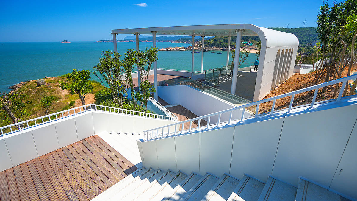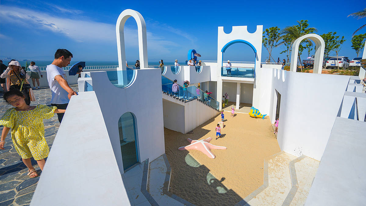 沿途除了有路边停车区外,每隔一段距离,还有专门的休息驿站,有公共厕所和餐饮小吃摊,每一处驿站建筑,都是美丽的网红打卡点。这里的海景落地窗海景房间,景色无敌,很多游客自带桌椅凳子在海景房里喝茶、喝咖啡,看着就是非常的惬意。