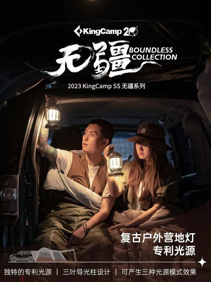 KingCamp复古户外营地灯拥有专利光源,三叶导光柱设计,可产生三种光源模式效果,为露营者提供便利服务。