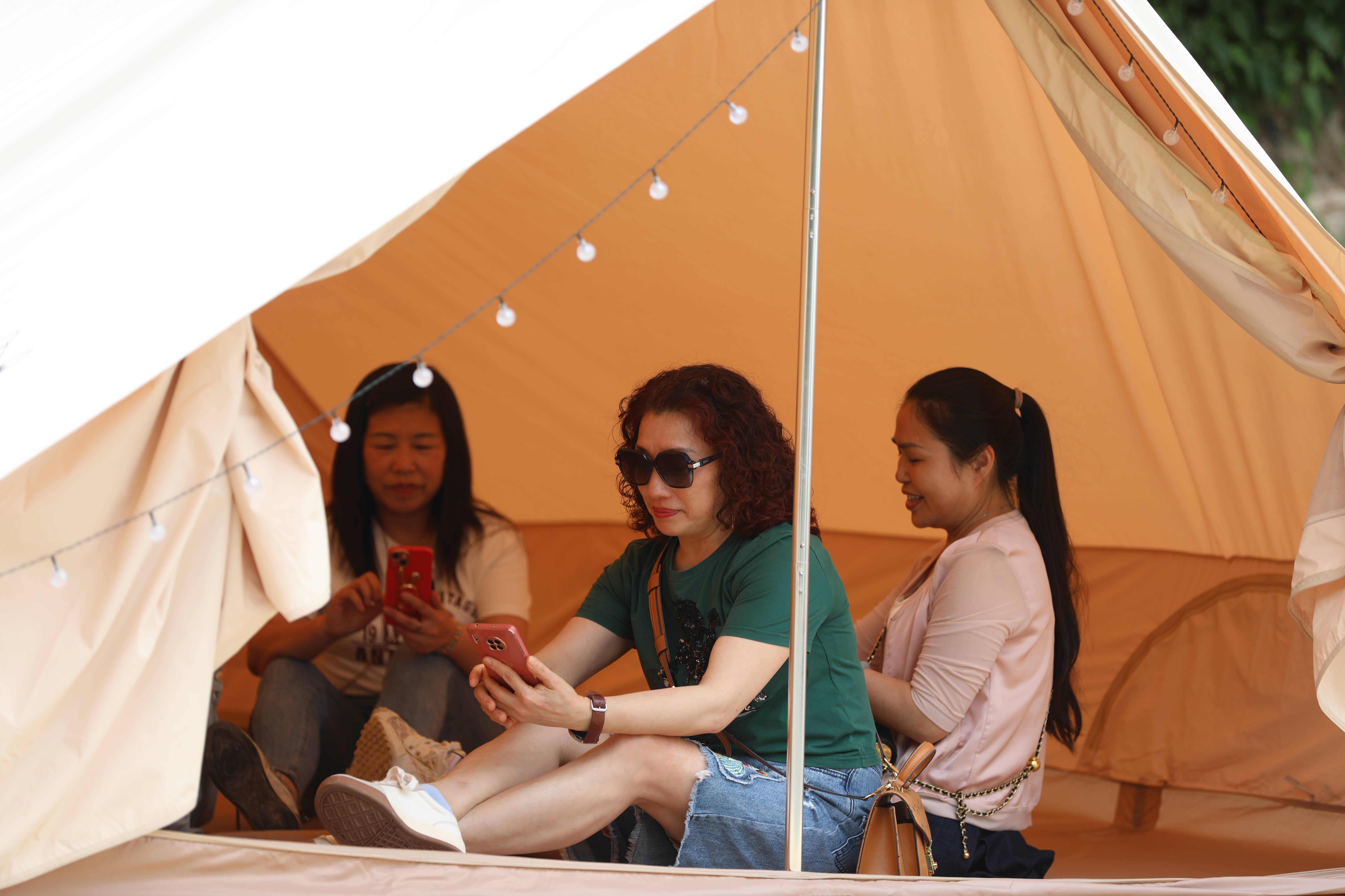 今年的五一节恰逢一年一度的台江苗族姊妹节,再加上在台江台盘“村BA”热度的加持之下,这几天来到台江台盘乡旅游的游客量热度不减,很多游客选择前来打卡。而在临近台盘村四公里左右的阳芳村的露营基地现场,工人们还在加紧布置灯光的同时,露营基地已经陆续接到游客的预订。