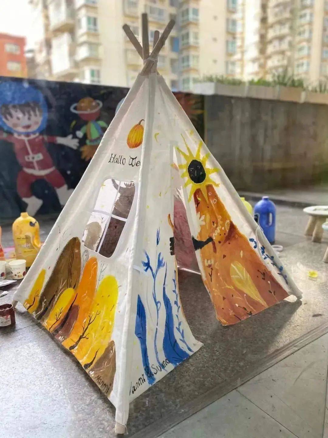 当空白的帐篷,被孩子们赋予创意色彩和图案,会有怎样的效果呢?一起期待吧!