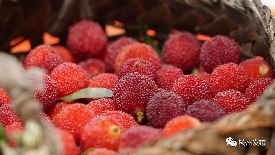 在展销会现场,农民朋友热情地向游客介绍酸甜可口的新鲜杨梅,现场的展览摊位也布满各式各样的农产品,吸引游客们驻足购买。