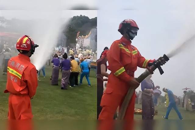 已有700年历史的云南泼水节也是如此,年年过,年年新,今年消防员都来凑热闹。
