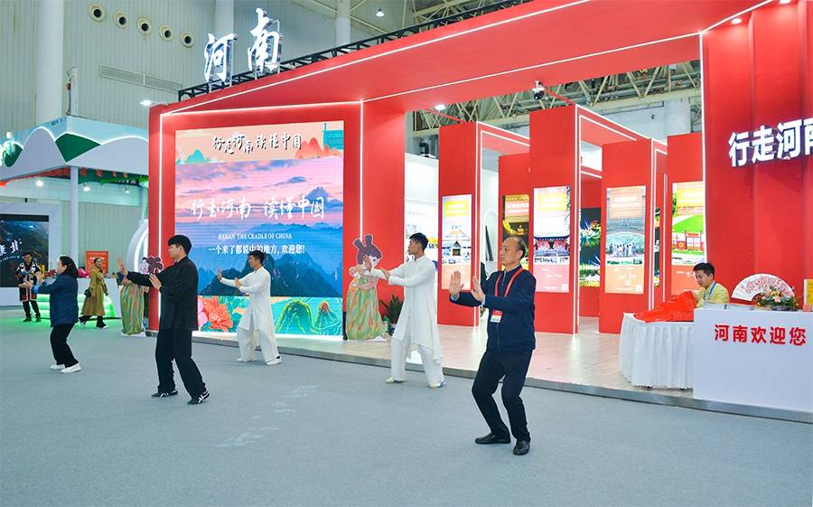 在主题研学线路展区,游客和展商代表在红旗渠精神、殷墟文化展区前驻足观看,感悟红色精神、探寻文化根脉。不少游客与工作人员深入交流,了解“华夏文明探源、读懂中原文博、认识新河南、领悟中国功夫、赓续红色记忆”等十条文化主题旅游线路的具体行程。