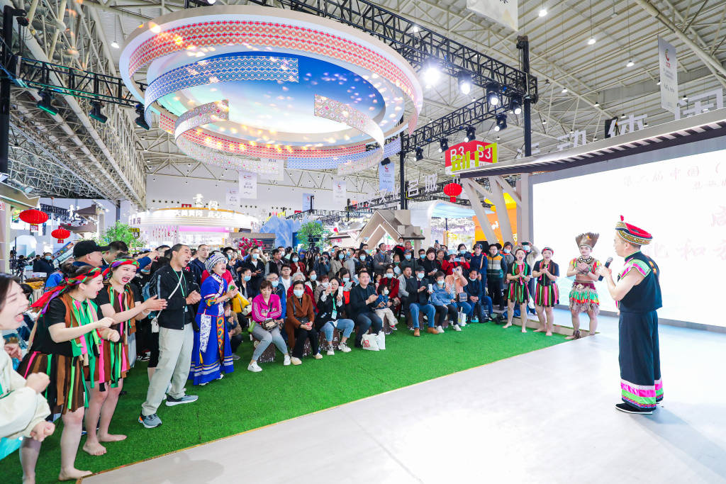 推介会现场,《太阳出来喜洋洋》、《八宝铜铃》、《留郎号》、《肉连响》等精彩表演轮番上演,唱响文旅博览会。推介会结束时,敬酒歌表演环节更是令游客们忍不住驻足欣赏和参与体验。