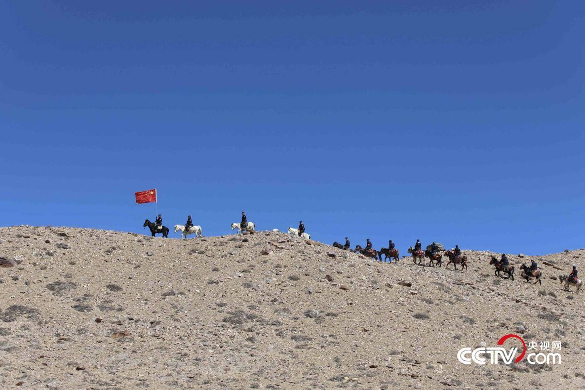 (塔尔钦边境派出所民警和护边员骑马巡逻 西藏边检总站 郭远敬 摄)