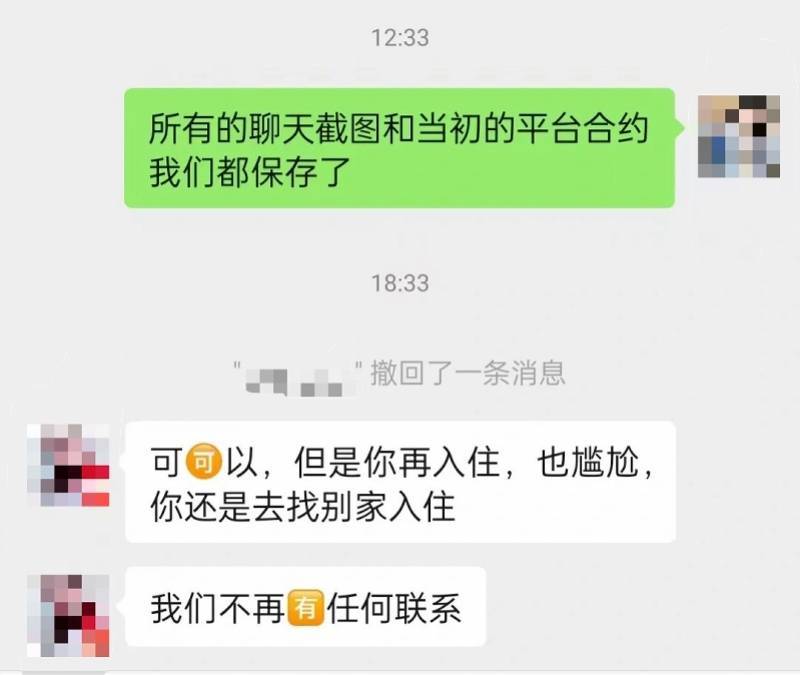 4月24日,消费者兔酱向南都记者表示,其3月18日通过携程平台预定了武汉的民宿,并支付了4晚的住宿费。等到了4月10日,民宿房东告诉她,五一期间人山人海、费用也贵,建议提前或周末过来,后又以房子可能要长期出租给别人为由让兔酱取消订单。11日,在兔酱投诉至携程平台之后,民宿房东表示可以原单入住,几个小时之后又反悔称“再入住也尴尬,还是去找别家入住,我们不再有任何联系”。