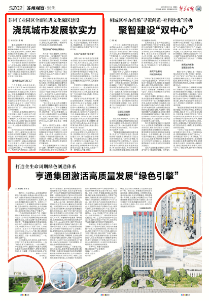 作为“面向未来的苏州城市新中心”,近年来,园区在推动经济高质量发展的同时将文化建设摆到更加突出的位置,全面推进文化强区建设,不断完善公共文化服务体系,推动打造了一批重大文化品牌活动,区域文化实力不断提升。