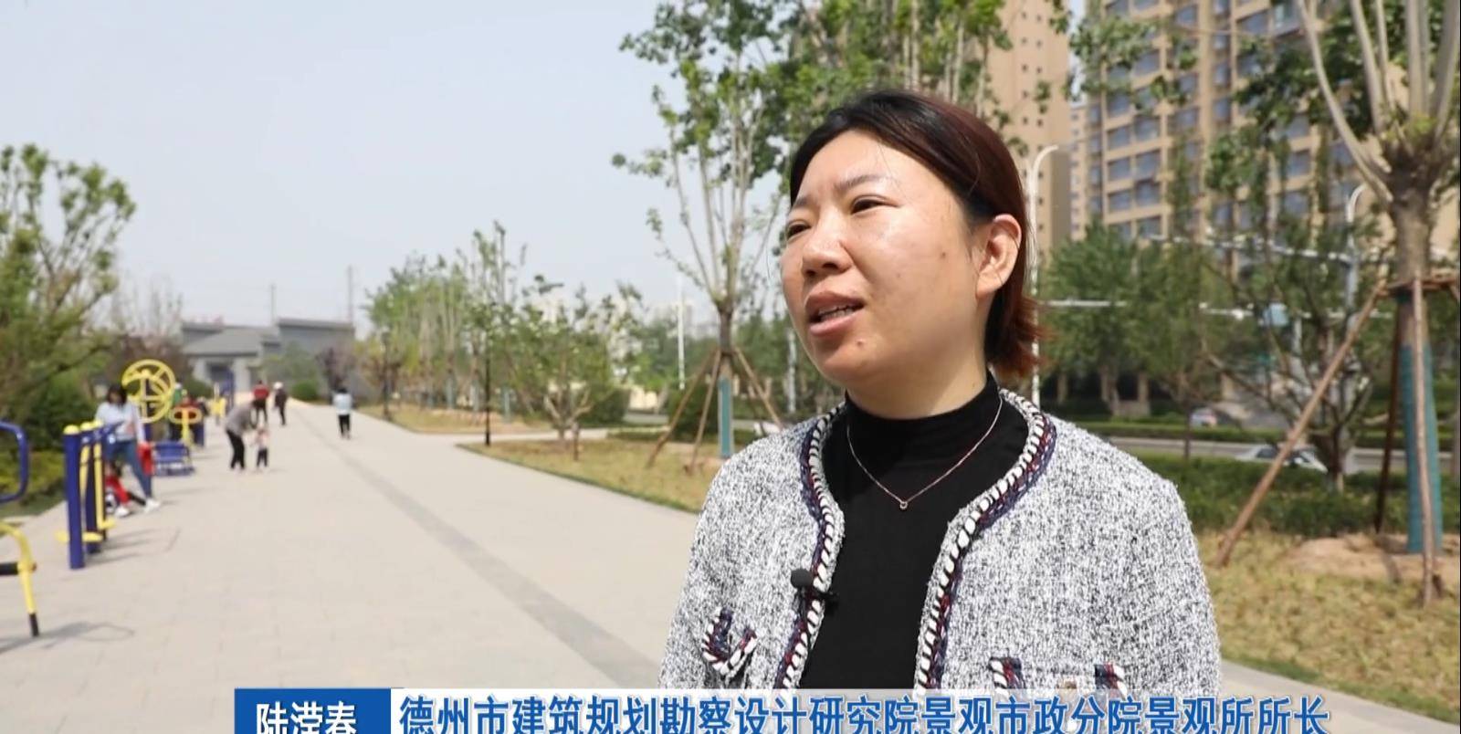 德州市建筑规划勘察设计研究院 景观市政分院景观所所长 陆滢春:繁露园我们设计了三个小的园子,包括了不窥园、三策园还有醇儒园,我们在做这个园子的时候,充分考虑了不同年龄段的人,比如说我们的活动健身器材,休闲廊架,小型的展览广场,以及明德书屋的位置上,孩子们的活动健身场地,形成了一个包括文化,又能够全民健身、全民活动,古今搭配的一个文化园子。