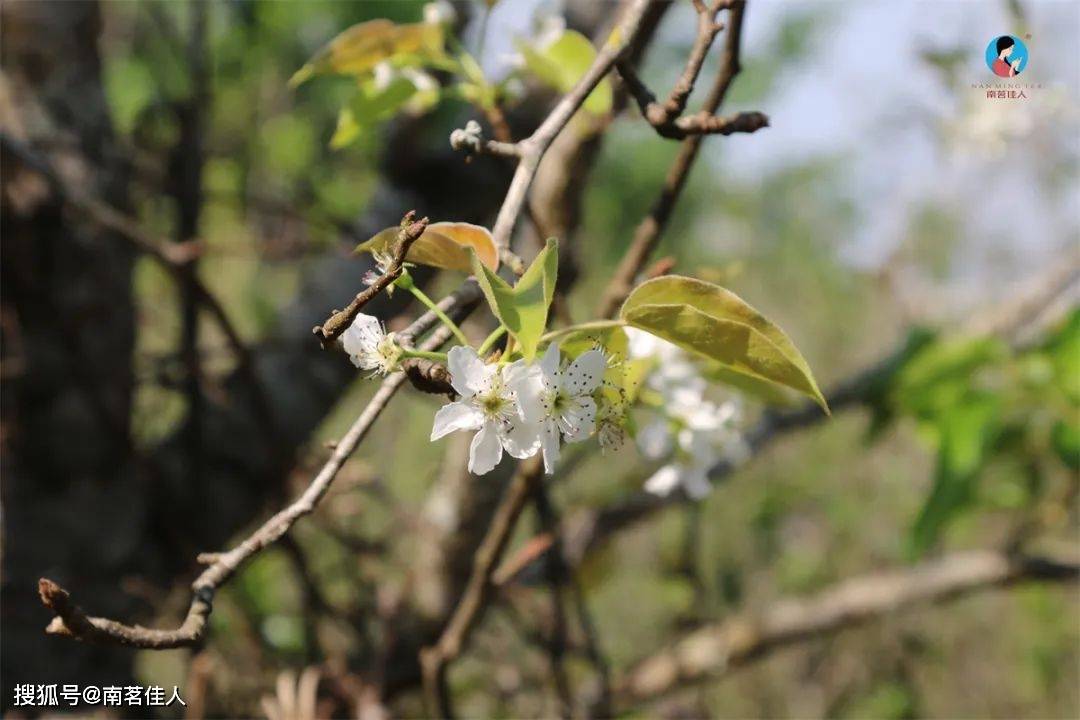 茶树旁边就长着一棵梨树,正逢花开,蜜蜂嗡嗡而来,又为忙碌的采茶增添了一抹热闹。