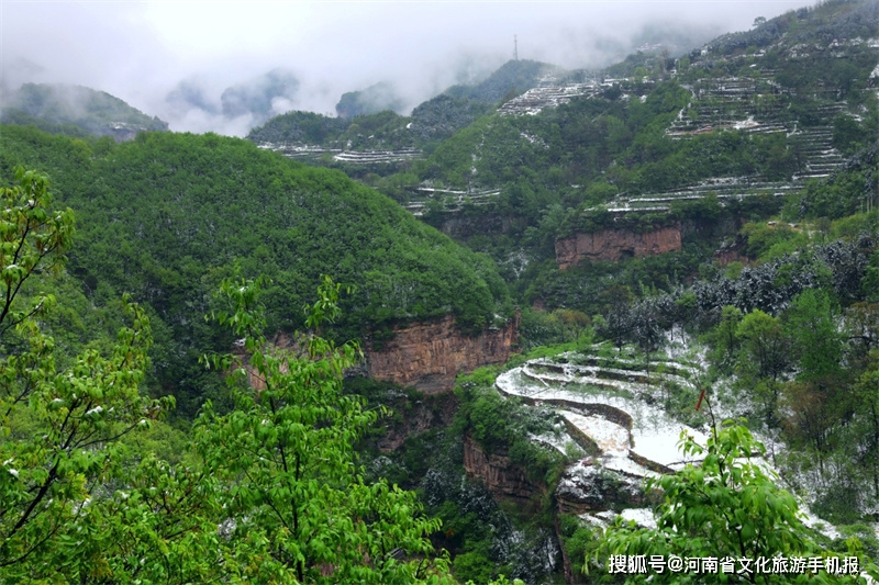 4月22日,安阳林州太行大峡谷再次喜降春雪,洁白如玉的春雪、郁郁葱葱的青山、胜似仙境的云海、层次分明的梯田和独具特色的民居相互映衬,构成一幅唯美的生态画卷,置身其中,令人心旷神怡,流连忘返。(文:何志文 图:秦加福)
