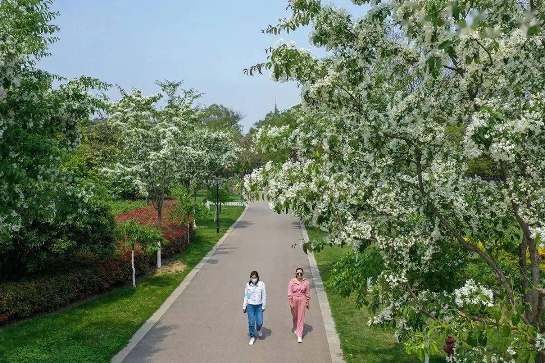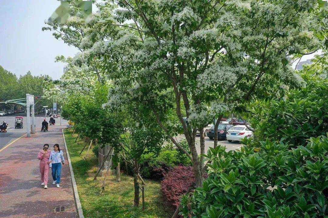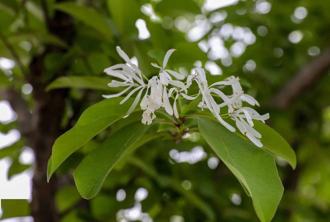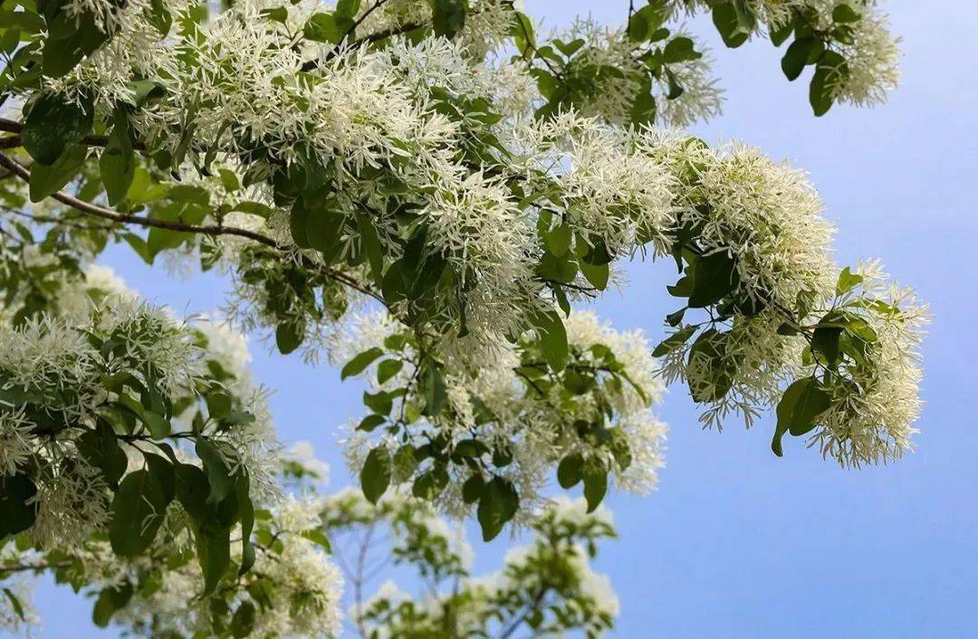 人间最美四月天。近日,在泗洪县城区世纪公园、山河路一停车场等处,国家二级保护植物流苏树迎来了盛花期。花满枝头,花瓣纤细,树冠如云似雪,犹如白雪压枝,因此,流苏树也被称为“四月雪”,走近树前,阵阵清香,沁人心脾,吸引市民前来观赏打卡。(陈玉 摄)