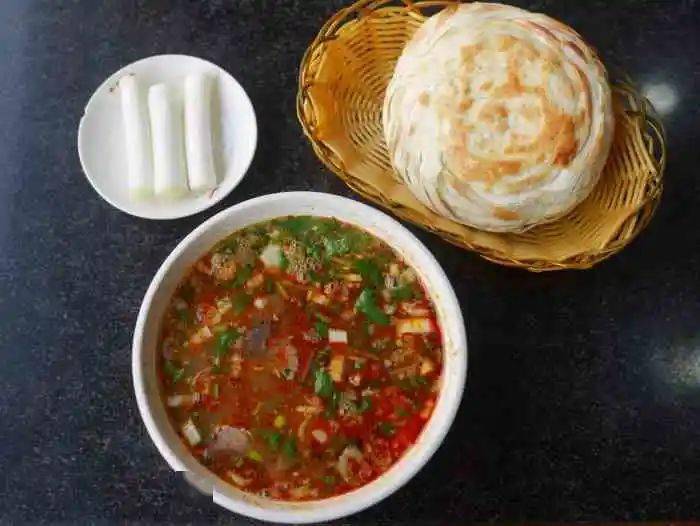 解州羊肉泡馍是山西运城盐湖区解州镇的一道著名小吃,比较有名气的就是王剑和一把抓,一把抓是以传统工艺为主,清汤为特色。而王剑羊肉泡馍则更加注重原汁原味,吃着肉嫩、汤鲜、膻小,搭配着千层饼吃,美味可口。