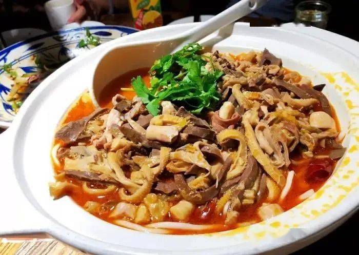 羊杂烂是山西运城新绛县的一道著名小吃,它主要是用羊骨架熬汤,里边加入羊肝、羊肺、羊肚、羊肠、羊血等羊杂碎,吃的时候搭配上当地的麻花或饼,吃着鲜辣爽口,非常过瘾,还暖胃。