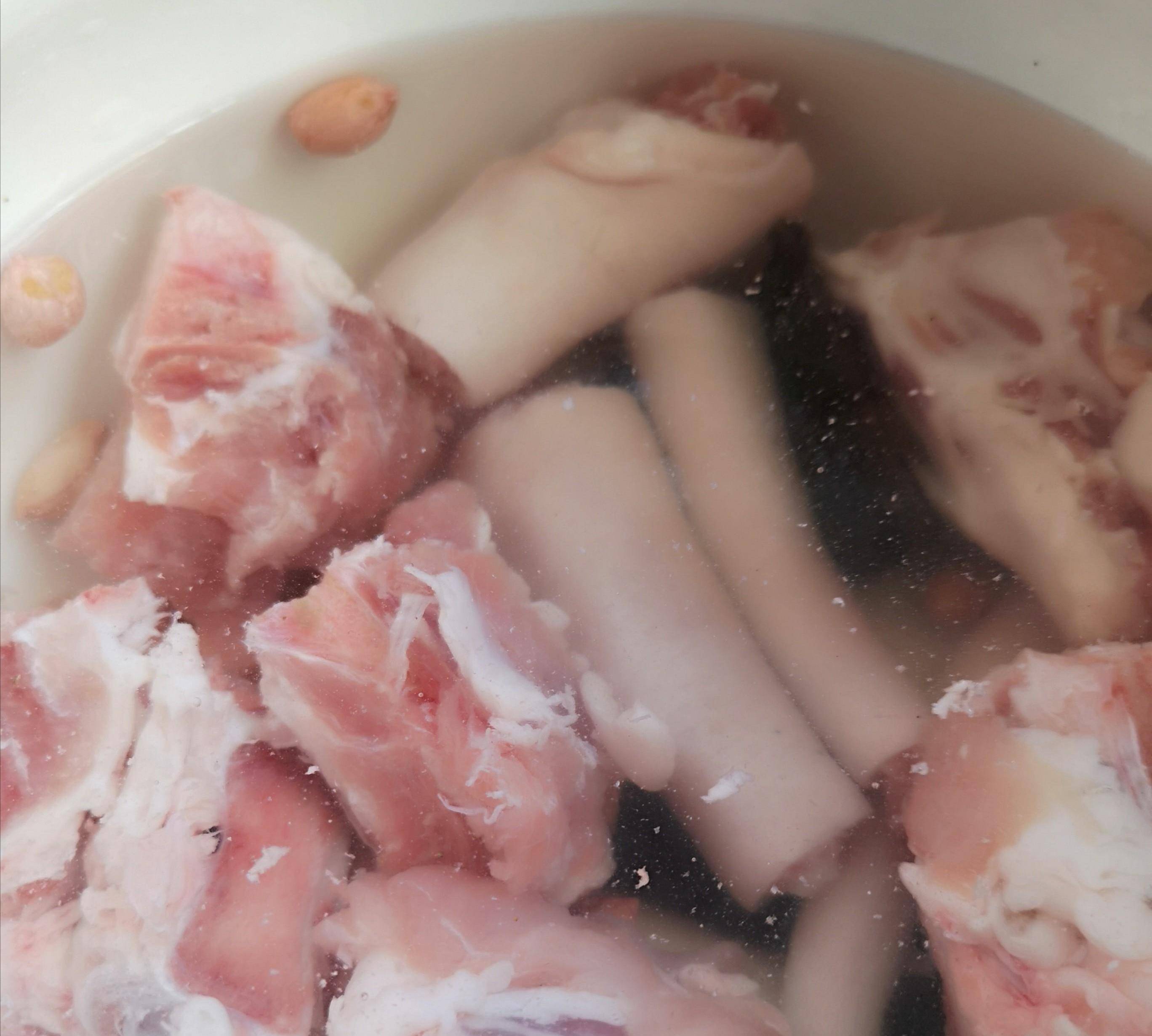 【配料】:梅花猪尾巴一条、杜仲20-30克、花生米一小把。