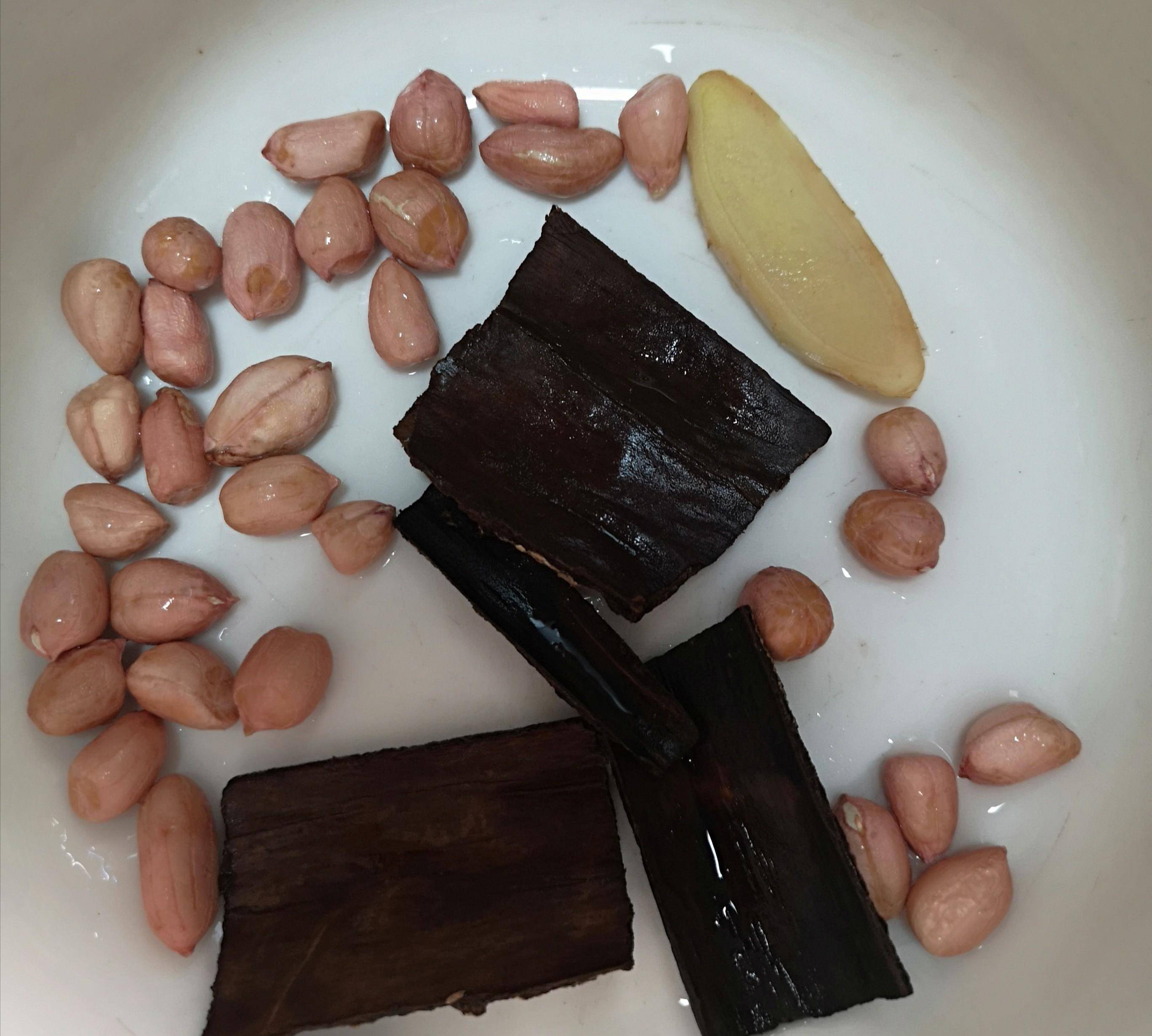 所以,在我以后使用杜仲炖猪尾巴的配料表里面,就把姜给删除了。直接将杜仲和花生米用清水冲洗一下,然后放在炖盅里面,和猪尾巴一起炖就可以了。