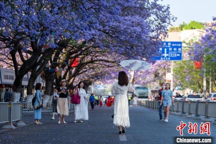 中新网西昌4月24日电 (记者 刘忠俊)记者24日从四川凉山州西昌市公安局交通管理大队获悉,针对航天北路蓝花楹“网红”路段人车混行和游客打卡矛盾,该大队及时调整优化相关路段交通组织,在“网红”路段易堵点增设执勤警力,并推出了一系列服务游客的交通举措。