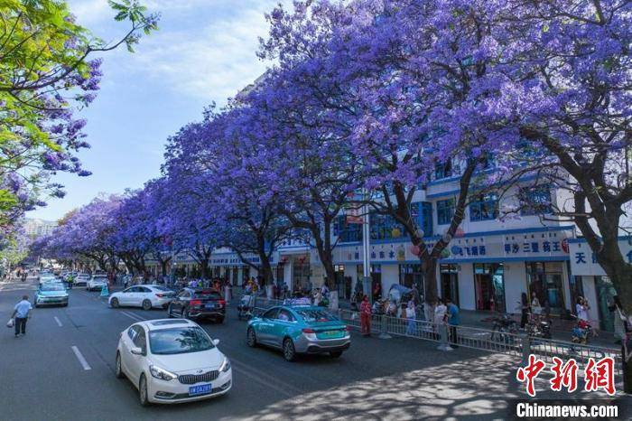 1994年,凉山州西昌市引进了一批蓝花楹树苗,并栽种在了航天北路。29年过去,蓝花楹树已长成大树,航天北路也被包裹在紫色的海洋中,一抹浪漫的紫色点燃了全国各地游客“打卡”热情。(完)