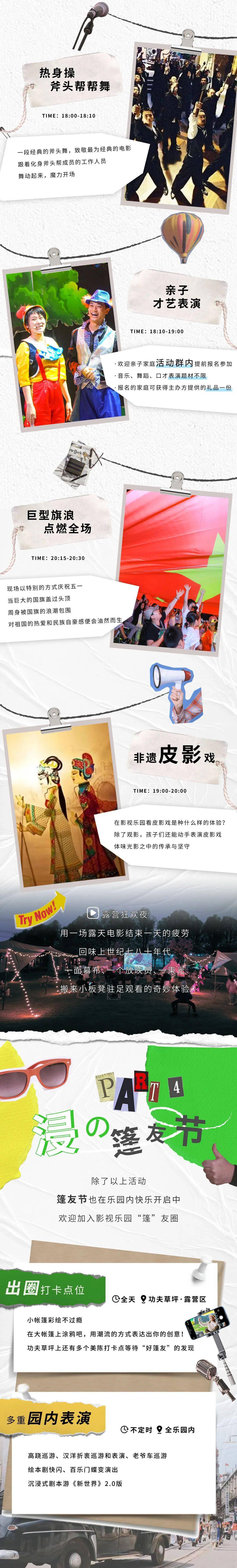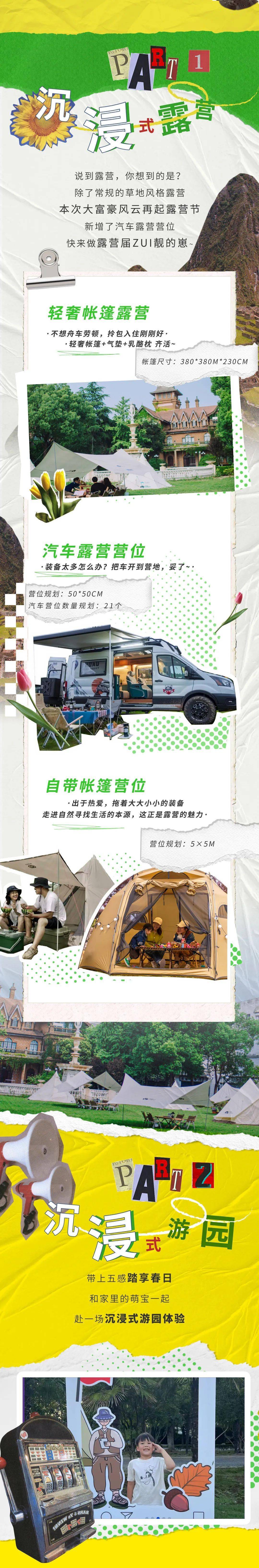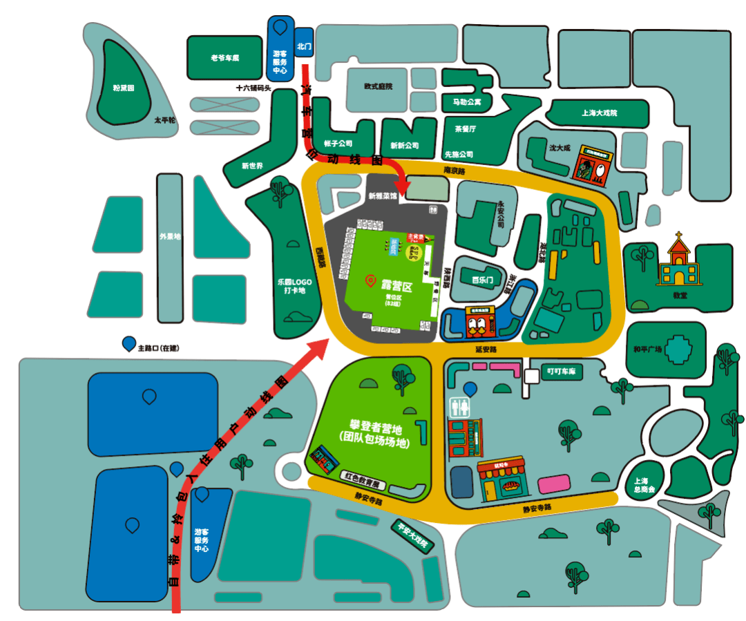 ●『露营套餐』除汽车营位套餐外其他套餐用户,在影视乐园南门签到入园,租借帐篷的家庭,前往露营节指定区域,领取露营装备,汽车营位用户从导航至影视乐园北门入园,按工作人员指引进入营地;