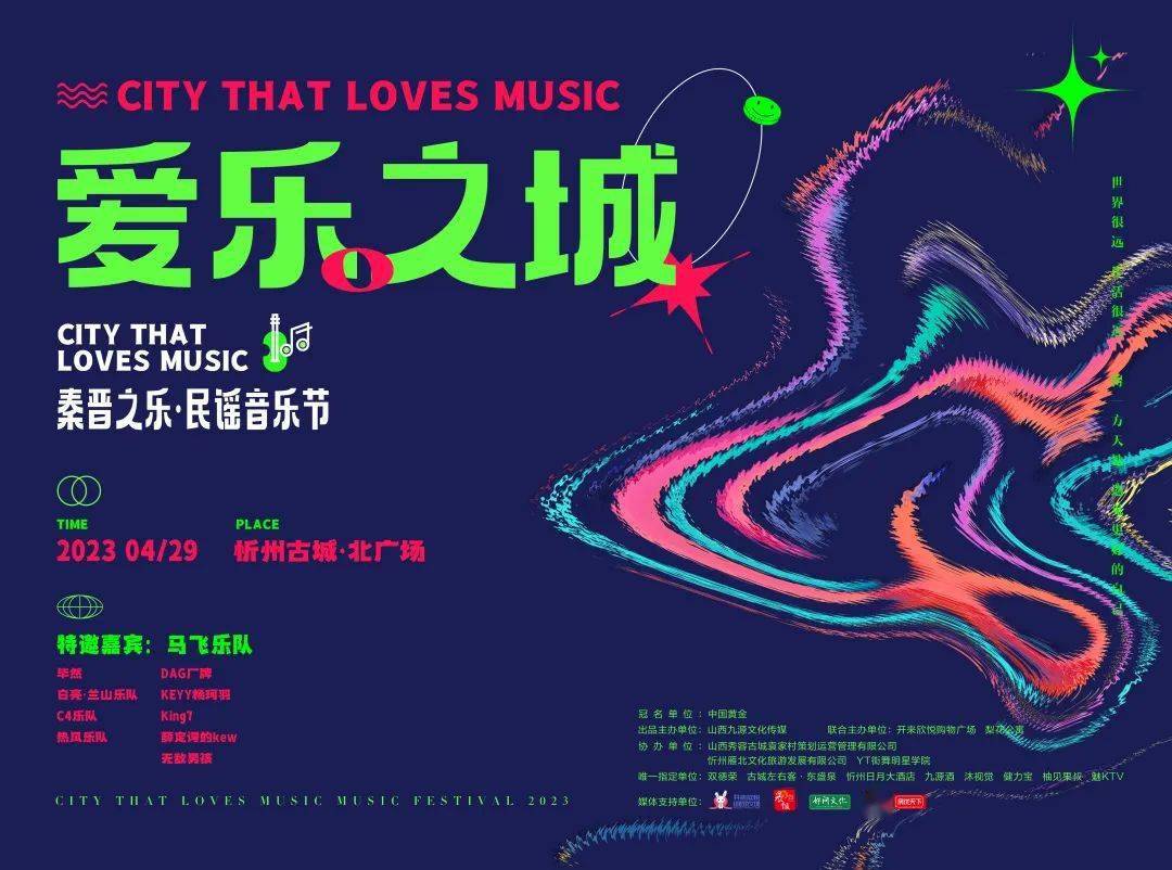 夜色轻启,五台山下,4月29日下午17 : 00 “ 爱乐之城 | 秦晋之乐 · 民谣音乐节” 在忻州古城北城门广场浪漫启动,让音乐与热爱狂撒这片土地,邀您来沉浸式感受忻州与西安的梦幻联动!