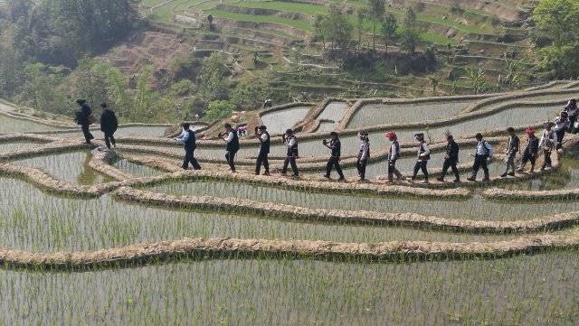 4月22日上午,哈尼人在撒玛坝梯田景区内举行了开秧门仪式,这也标志着为远来的客人隆重地打开了旅游观光大门。经过多年建设,景区的设施不断完善,接待能力和水平也得到了提升,景区内不仅修建了5.5公里长的梯田栈道,还配备了观光车,途中建设了多个换乘点,方便了不同年龄段的游客攀爬观赏千级梯田。此外,景区还建设了停车场及游客服务中心,解决了梯田游览的停车难题。