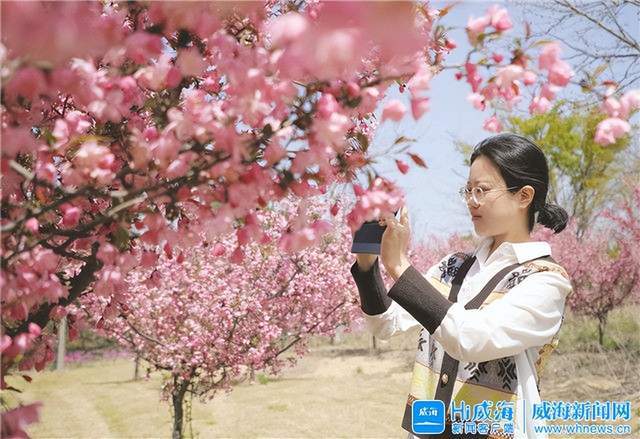 要说威海植物园里的“网红”,樱花观景台当之无愧。登上木质的观景台,瞬间被粉色的樱花包围,置身于满山花海中,仿若仙境里的仙子。据了解,“五一”假期,樱花观景台的樱花开得正浓,游客可以从北门进入,沿“樱花大道”观赏道路两侧晚樱,然后深入到樱花观景台拍照打卡。