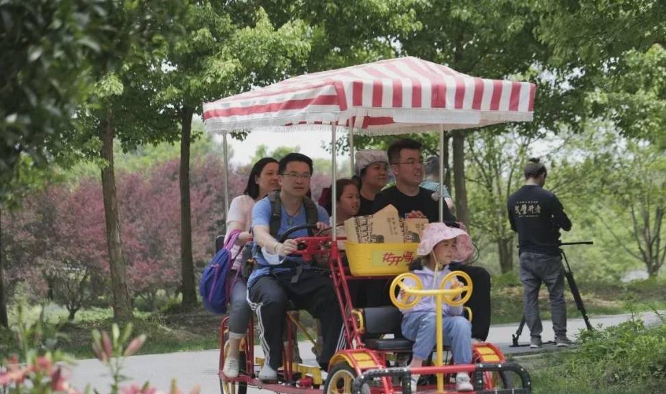 生态园由花海、梅园、樱花园、秋景园组成。仲春樱花浪漫,海棠妩媚,玉兰雅致,一步一景,正是一家人骑行一辆自行车,在花丛间穿梭,尽情享受亲子间最惬意的时光。园区还有趣味打卡与亲子游戏。