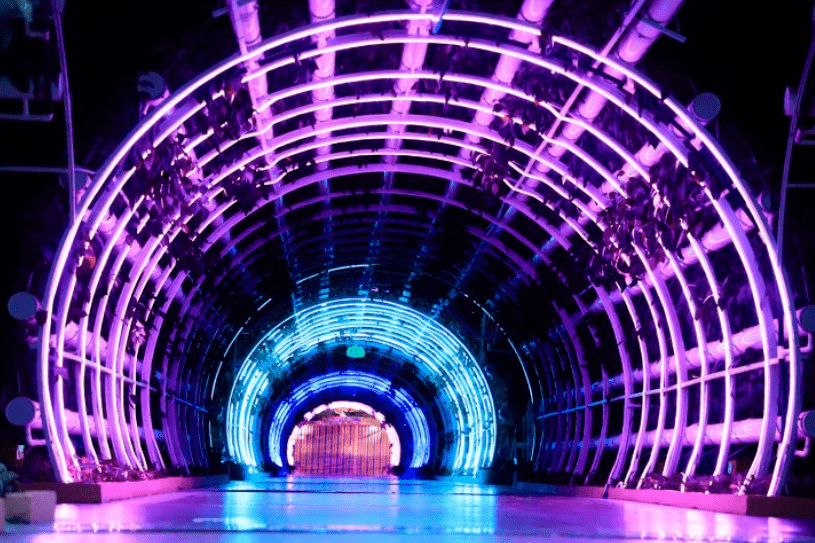 “蔬菜+灯光”会有什么奇迹发生吗?今年菜博会重点改造热带植物馆,全新设计“一天零一夜”精灵丛林艺数馆,利用声光影、VR、虚拟空间等技术,打造了研学结合的园林实景、沉浸互动性旅游项目。同时,策划了“夜游菜博会·蔬菜嘉年华”夜游系列活动,将声光电与蔬菜大棚园艺结合,培育了集“夜游”“夜娱”“夜购”于一体的城市夜间文旅新业态。