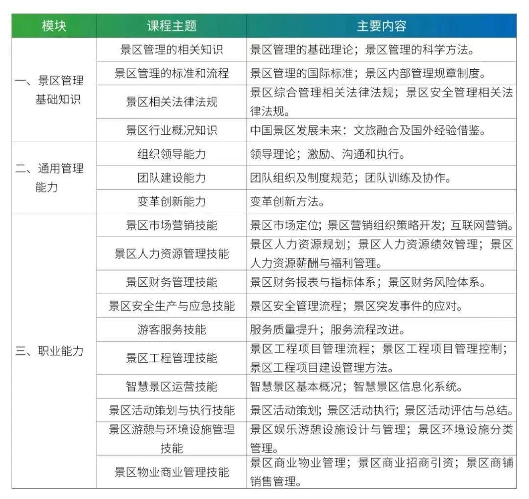 1.集中授课,根据《景区职业经理人资质等级划分与认定》团体标准中规定的基础知识和职业能力要求,通过集中组织授课学习。