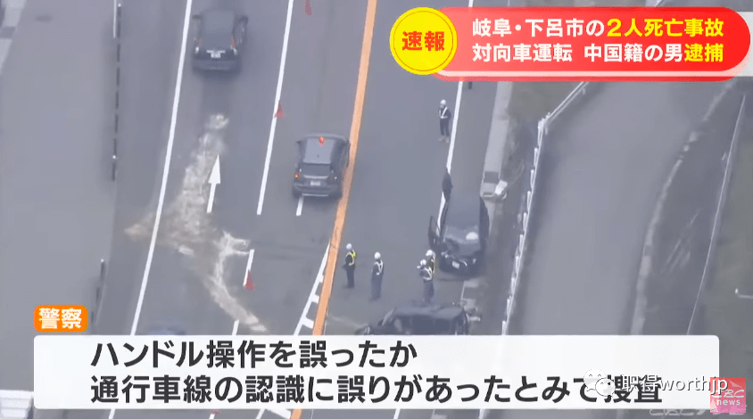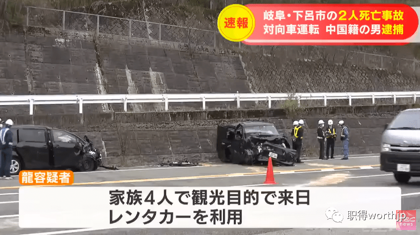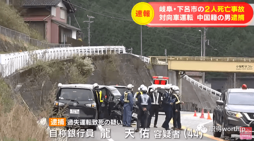 4月14日,岐阜县下吕市的某公路发生两车相撞事故,造成两名日本女性死亡,一名中国男子因涉嫌驾驶过失致死被逮捕。