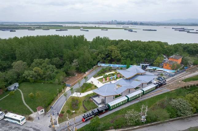 时空的列车从这里出发,时代发展的印记一一掠过。梅钢站整体设计承袭了梅钢老文化路沿街建筑风格,引导我们穿越时间的隧道,回到“抢焦夺铁”的燃情岁月。全程5.4公里,沿线景观用时代切片的手法再现从60年代到21世纪新中国工业发展脉络和绿色低碳的清洁生产方式,体验不同时代背景下梅钢的发展和梅钢人艰苦创业、奋发创新打造城市钢厂标杆的实践。“三山半落青天外,二水中分白鹭洲”,到达三山矶公园,与唐代大诗人李白举杯邀月,在长江岸边领略现代化工业码头的绿色与智慧以及长江的神奇与壮美。