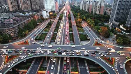 二环高架路从人南立交桥下穿过。摄影邓文育