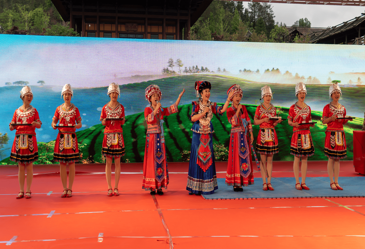 2023癸卯大熊山古树茶开采节开幕现场活动精彩纷呈,《大熊山古树红茶》纪录片首播放映,曾朝辉主任宣布大熊山古树茶开采,谌永刚副县长发表讲话,梳理总结大熊山茶史、大熊山茶叶资源、产业成绩,提出殷切希望聚集农业产业集群力量共同发力打造大熊山古树茶品牌。随后开展了祭祀茶祖蚩尤、茶圣陆羽、茶使张五郎的传统文化仪式,山歌皇后陈福云老师及团队现场演绎国家级非遗新化山歌,逸风武术大熊山培训学校师生表演国家级非遗新化武术,巫傩师开坛赞茶呈现国家级非遗梅山傩戏,大熊山原始居民莫猺人现场敬献祭祀新茶。与此同时,湖南湘熊茶业有限公司进行了大熊山古树茶新品发布会,有熊山雾凇、大熊山古树红茶、大熊山百年老枞等新品精彩亮相,带领现场嘉宾观摩了蚩尤屋场梅山峒、桃源峒,参观大熊山古树茶、黄精、玉兰片电商产业园。