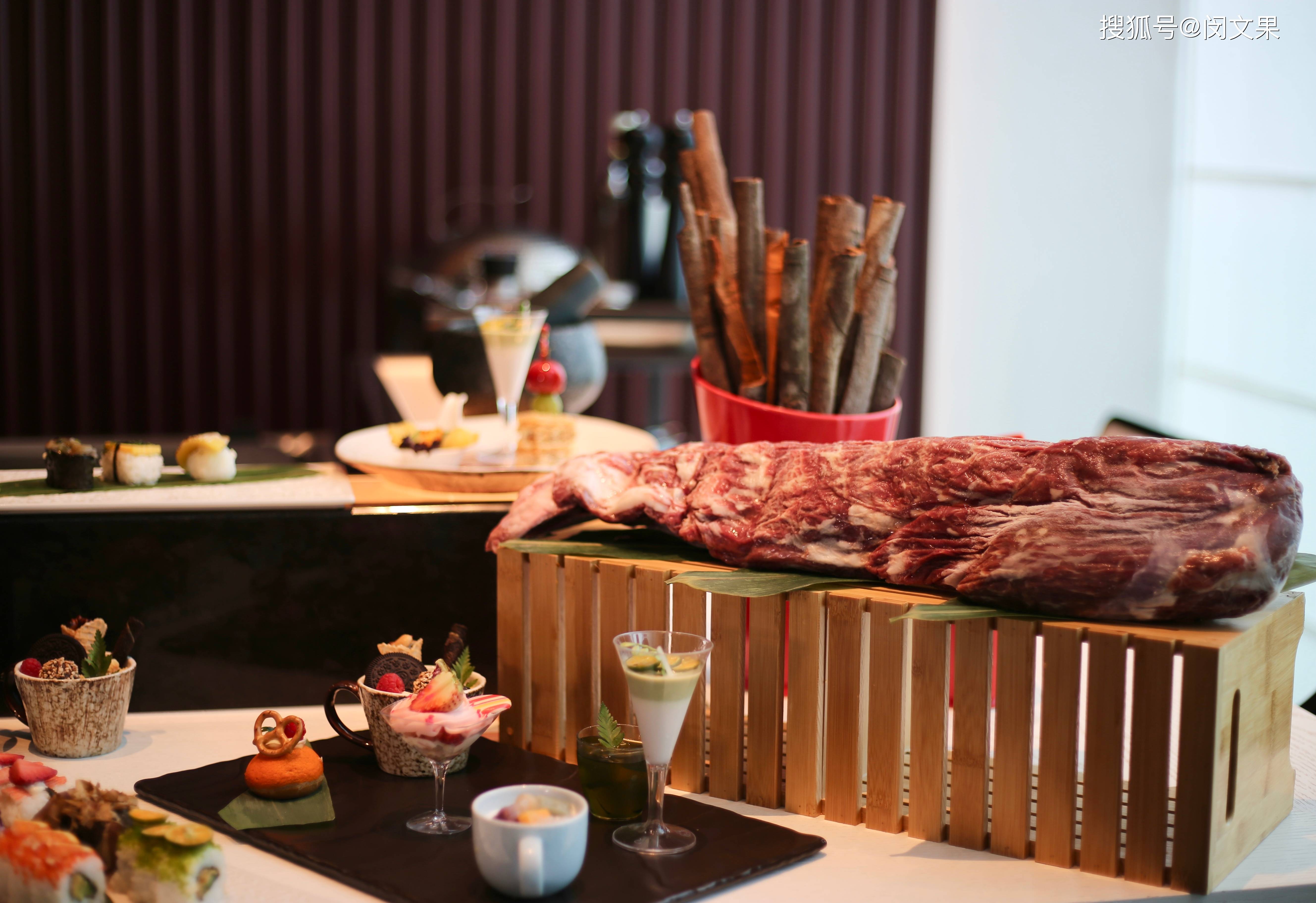餐饮配套上,共设有包括大堂酒廊,潮江楼全日餐厅,韩江潮中餐厅及铁板烧等在内的四间餐厅。潮江楼午间零点,每晚供应自助晚餐。目前自助晚餐在进行东南亚美食节的主题,不出潮州,也可以品尝到很多东南亚风味美食。比如黄金咖喱蟹、沙爹鸡肉串、牛肉串、泰式火山排骨、青木瓜大虾沙拉、泰式冬阴功海鲜汤、仁当牛肉等等,一定要试试这里出品的芒果班戟,奶油包裹香甜芒果,一口一个,香甜可口。